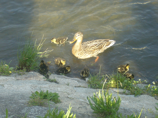 我已經放空到鴨真的都來了 鴨媽媽帶七隻小鴨