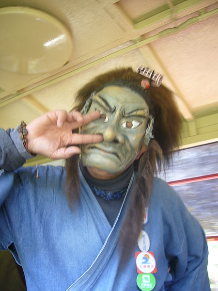 (不過,在他進到司機車廂後,把面具拿掉的一瞬間,被我撇見,原來是大叔,啊~~~可以不要讓觀光客這麼快幻想破滅嗎.....)