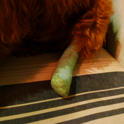 ↓來張特寫,因為包紮之後,腿的感覺遲鈍,尿尿的時候,腳還不小心插進地上的排水洞,螢光棒髒掉了......