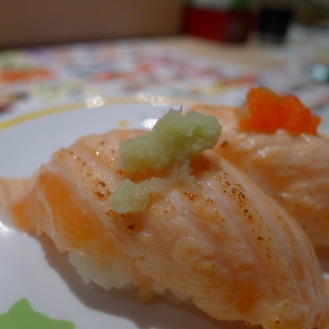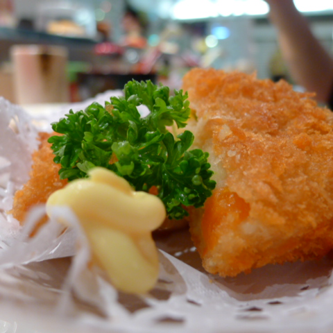 是我一人的晚餐,除了炙燒鮭魚和可樂餅跟朋友對分。