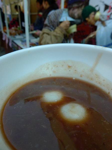 ↓免費的紅豆湯,很大碗,還尬兩顆湯圓,熱熱甜甜超好吃!