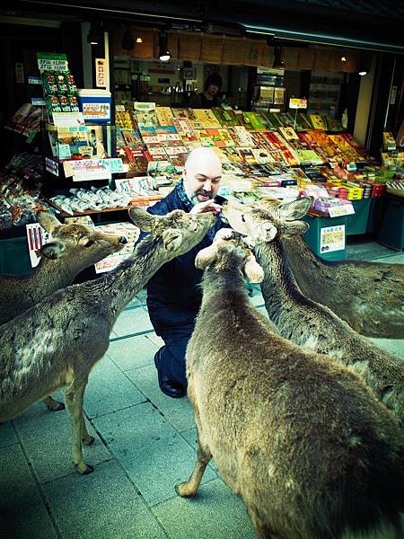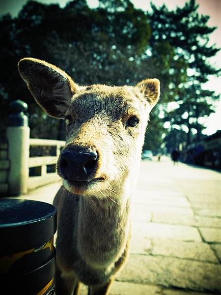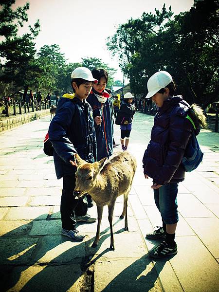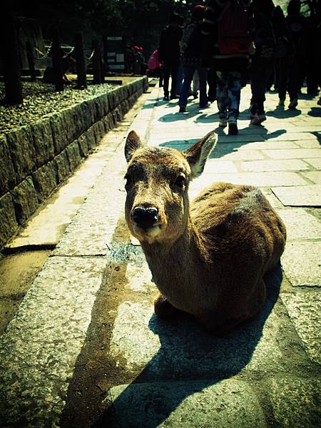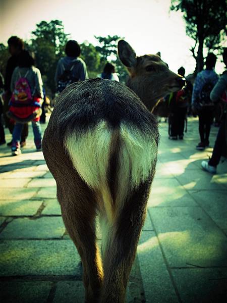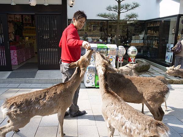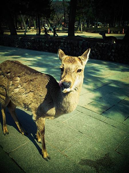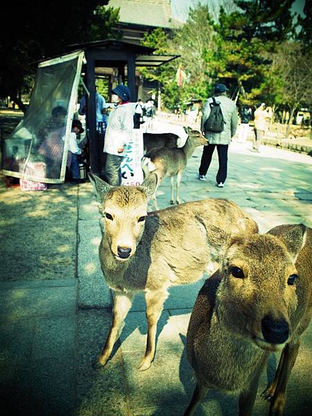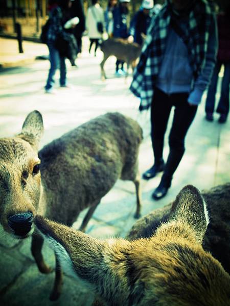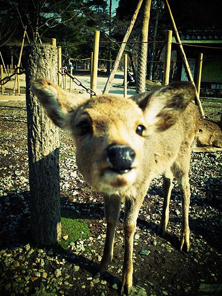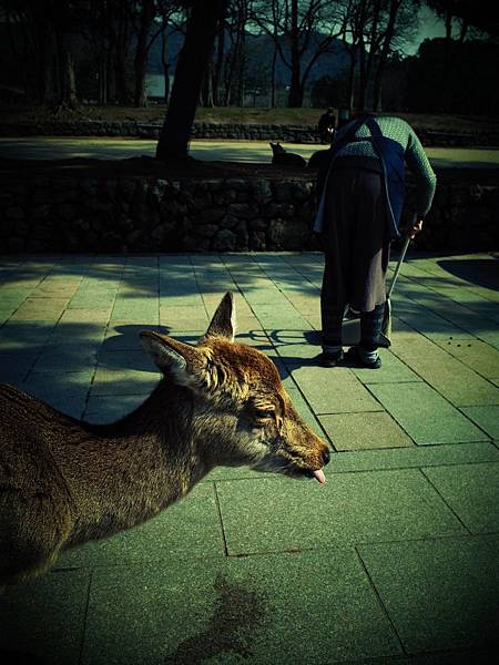 ↓他一直跟著我,害我沒辦法放著他不管,於是我又為了他多花150円買鹿仙貝,讓他吃飽飽。