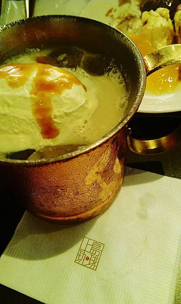 (非常喜歡冰咖啡用銅杯裝的感覺)